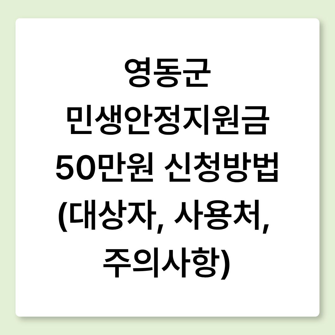 2026년 1월 기준, 충북 영동군이 전 군민에게 1인당 50만 원의 민생안정지원금을 지급합니다. 신청 자격, 사용처, 신청 시 주의사항까지 한눈에 확인할 수 있도록 정리했습니다.